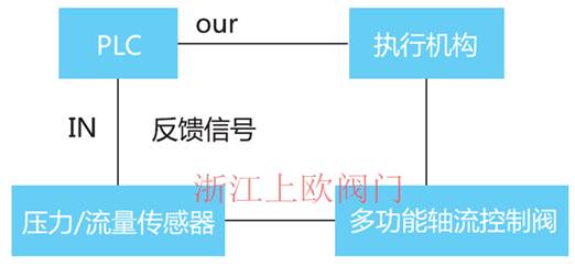 2、 將壓力傳感器輸出反饋信號送入PLC處理,經(jīng)PLC預(yù)設(shè)值比較后輸出相應(yīng)控制信號給電動執(zhí)行裝置,并驅(qū)動閥門運轉(zhuǎn)至對應(yīng)位置(閥門開度)。