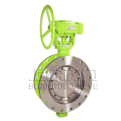 本產(chǎn)品由閥體、蝶板、密封圈、傳動機(jī)構(gòu)等主要部件組成。其結(jié)構(gòu)采用三維偏心原理設(shè)計,在硬軟多層密封兼容的新工藝加工后,使蝶閥在運行工作時,減少了其扭矩力,達(dá)到省力、節(jié)能之效果。從而確保蝶閥整體的抗腐蝕、耐高溫、抗磨損的可靠性。