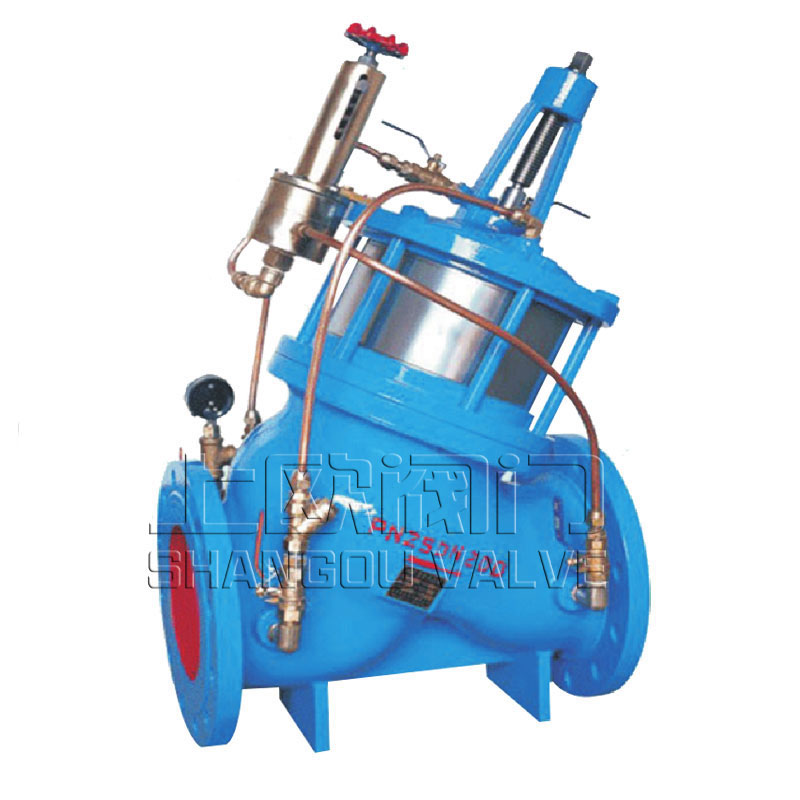 用于維持主閥上游供水壓力為一固定值,當(dāng)上游水壓力大于設(shè)定水壓時(shí),主閥迅速開(kāi)啟泄壓。當(dāng)壓力低于設(shè)定壓力時(shí),主閥關(guān)閉持壓。