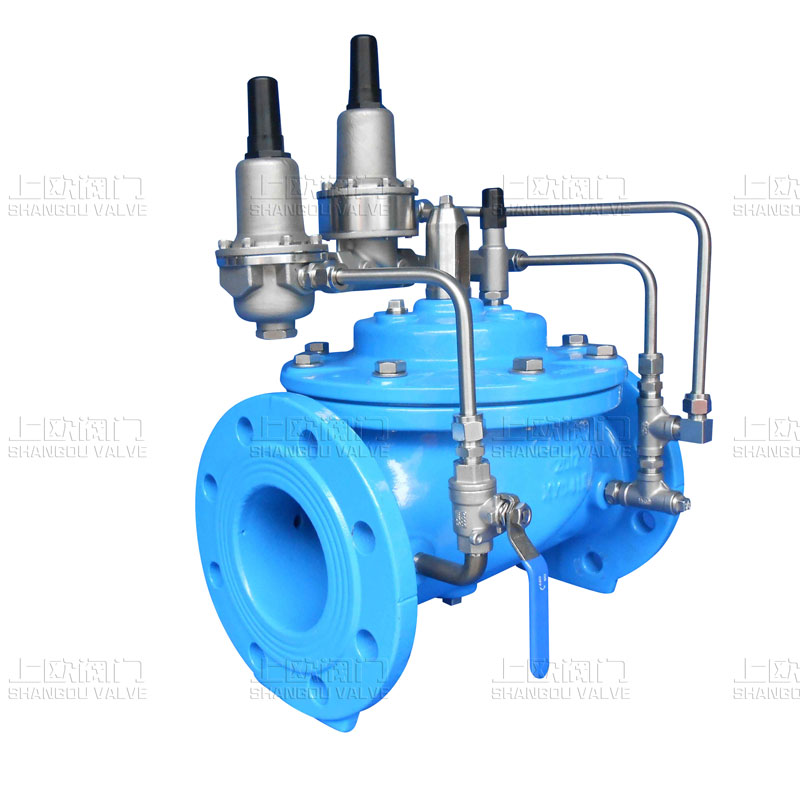 700X多功能水泵控制閥由主閥、電磁導(dǎo)閥、針閥、球閥、單向閥、行程開關(guān)、微形過濾器和壓力表組成水力控制接管系統(tǒng)。水泵需停止工作時(shí),先由進(jìn)口壓使主閥關(guān)閉90%后,水泵停止運(yùn)轉(zhuǎn)。剩余10%由回水關(guān)閉?煞乐顾N現(xiàn)象發(fā)生。本產(chǎn)品利用電磁導(dǎo)閥控制,不需要其它裝置和能源。節(jié)約能源,保養(yǎng)簡便,停泵平穩(wěn)。本系列閥門產(chǎn)品廣泛用于高層建筑、生活區(qū)等供水管網(wǎng)系統(tǒng)及城市供水工程。