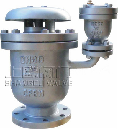 復(fù)合式高速進(jìn)排氣閥可防止浮球在高速氣流中被吹起而堵塞排氣口,造成排氣閥失效,為防止閥口被吹堵,高速進(jìn)排氣閥在入口設(shè)置護(hù)筒,使閥門在結(jié)構(gòu)上變得復(fù)雜。 1、充水時高速排氣,不怕吹堵。 2、放水時高速吸氣。 3、壓力下微量排氣。